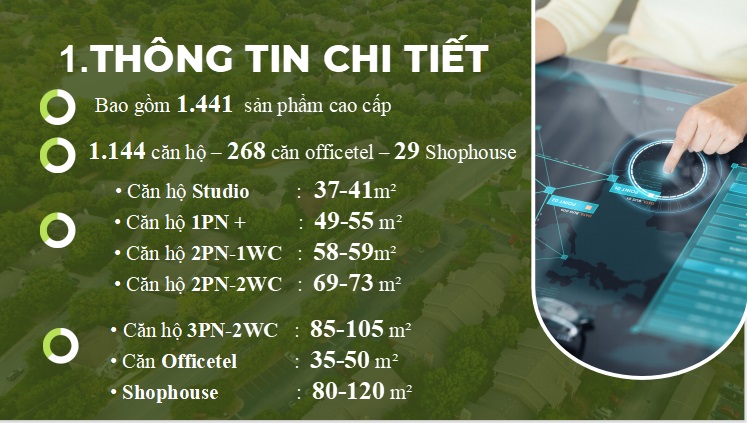 • Hứa hẹn đây sẽ trở thành điểm đến lý tưởng cho những ai khao khát về một không gian sống hiện đại, đầy cảm hứng và đánh thức mọi giác quan giữa lòng khu đô thị thông minh và phát triển bậc nhất TP.Hồ Chí MInh