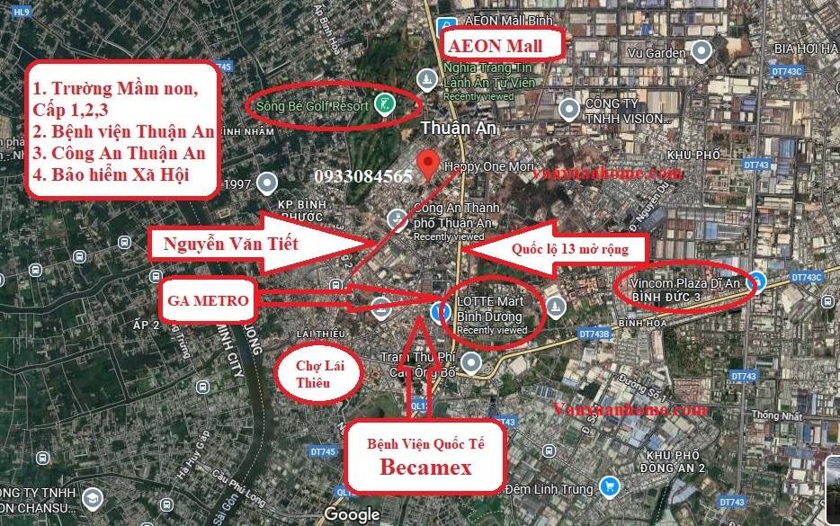 • Lotte mart, Aecon Mall, KCN Vsip 1, Golf Sông Bé ( bán kính 2km)